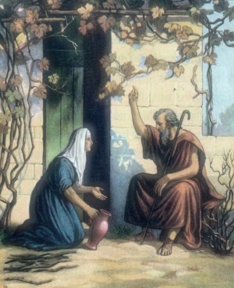 And Elijah said unto her, Fear not; go and do as thou hast said: but make me thereof a little cake first, and bring it unto me, and after make for thee and for thy son. For thus saith the LORD God of Israel, The barrel of meal shall not waste, neither shall the cruse of oil fail, until the day that the LORD sendeth rain upon the earth. And she went and did according to the saying of Elijah: and she, and he, and her house, did eat many days. And the barrel of meal wasted not, neither did the cruse of oil fail, according to the word of the LORD, which he spake by Elijah. And it came to pass after these things, that the son of the woman, the mistress of the house, fell sick; and his sickness was so sore, that there was no breath left in him. And she said unto Elijah, What have I to do with thee, O thou man of God? art thou come unto me to call my sin to remembrance, and to slay my son? And he said unto her, Give me thy son. And he took him out of her bosom, and carried him up into a loft, where he abode, and laid him upon his own bed. And he cried unto the LORD, and said, O LORD my God, hast thou also brought evil upon the widow with whom I sojourn, by slaying her son? And he stretched himself upon the child three times, and cried unto the LORD, and said, O LORD my God, I pray thee, let this child’s soul come into him again. And the LORD heard the voice of Elijah; and the soul of the child came into him again, and he revived. And Elijah took the child, and brought him down out of the chamber into the house, and delivered him unto his mother: and Elijah said, See, thy son liveth. And the woman said to Elijah, Now by this I know that thou art a man of God, and that the word of the LORD in thy mouth is truth.—1 Kings XVII.