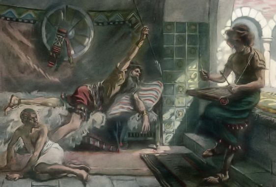 The most peculiar of these attempts of Saul was that when he sought to seize David in his own house: on which occasion he was saved by a curious stratagem, devised by Michal his wife, the king’s daughter. The attempt to slay David by night represents the repugnance to the spiritual man which is cherished by the natural man when in a very dark state; when the soul is benighted, and we repel everything but the trouble with which we are then engaged. Michal, the King’s daughter, who had become David’s wife, is the representative of that glorious principle, the affection for truth. She was given to David after his victory, to teach us that when we have overcome the tendency to a religion of faith only, we are gifted by the Lord with a holy earnestness for those truths which will teach us how to live. This affection is the king’s daughter who is “all glorious within: her clothing is of wrought gold” (Ps, xlv. 13).