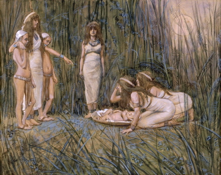 The daughter of Pharaoh coming to wash herself at the river represents the earnest affection in such a soul to be right. In all things of science and outer knowledge, represented by the Nile, the river of Egypt, the true soul desires to be genuine, faithful, correct: and hence, is constantly studying the truths of science and yearning for the guidance of divine wisdom, and by their means to free itself from prejudice and misconception. Such a soul is ever desirous of washing itself. To such a state of feeling the ark is revealed, and she sends her maid to fetch it, or in other words, seizes it with affectionate interest. She opens it also. And when she had opened it, she saw the child, and, behold, the babe wept.–ver. 6.