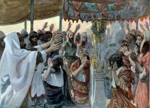 And all the people brake off the golden earrings, which were in their ears, and brought them unto Aaron. And he received them at their hand, and fashioned it with a graving tool, after he had made it a molten calf: and they said, These be thy gods, O Israel, which brought thee up out of the land of Egypt.–Exodus xxxii. 3, 4.