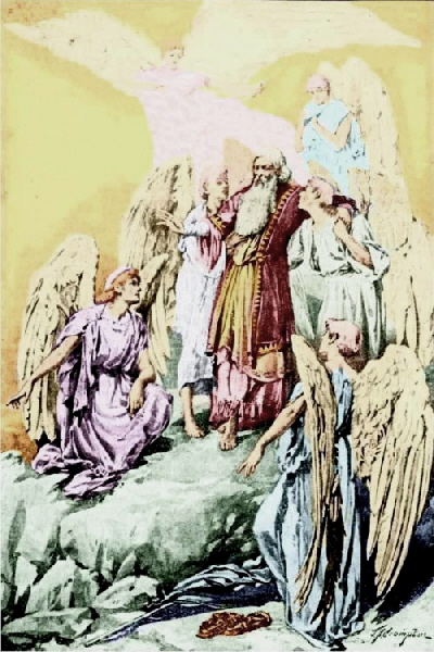 And Moses went up from the plains of Moab unto the mountain of Nebo, to the top of Pisgah, that is over against Jericho. And the LORD shewed him all the land of Gilead, unto Dan, And all Naphtali, and the land of Ephraim, and Manasseh, and all the land of Judah, unto the utmost sea, And the south, and the plain of the valley of Jericho, the city of palm trees, unto Zoar. And the LORD said unto him, This is the land which I sware unto Abraham, unto Isaac, and unto Jacob, saying, I will give it unto thy seed: I have caused thee to see it with thine eyes, but thou shalt not go over thither. So Moses the servant of the LORD died there in the land of Moab, according to the word of the LORD. And he buried him in a valley in the land of Moab, over against Bethpeor: but no man knoweth of his sepulchre unto this day. And Moses was an hundred and twenty years old when he died: his eye was not dim, nor his natural force abated. And the children of Israel wept for Moses in the plains of Moab thirty days: so the days of weeping and mourning for Moses were ended. And Joshua the son of Nun was full of the spirit of wisdom; for Moses had laid his hands upon him: and the children of Israel hearkened unto him, and did as the LORD commanded Moses. And there arose not a prophet since in Israel like unto Moses, whom the LORD knew face to face, In all the signs and the wonders, which the LORD sent him to do in the land of Egypt to Pharaoh, and to all his servants, and to all his land, And in all that mighty hand, and in all the great terror which Moses shewedin the sight of all Israel.—Deuteronomy XXXIV.