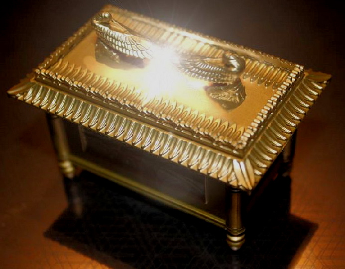And thou shalt make a mercy-seat of pure gold: two cubits and a half shall be the length thereof, and a cubit and a half the breadth thereof. And thou shalt make two cherubim of gold, of beaten work shalt thou make them, in the two ends of the mercy-seat. And make one cherub on the one end, and the other cherub on the other end: even of the mercy-seat shall ye make the cherubim on the two ends thereof. And the cherubim shall stretch forth their wings on high, covering the mercy-seat with their wings, and their faces shall look one to another, toward the mercy-seat shall the faces of the cherubim be. And thou shalt put the mercy-seat above upon the ark, and in the ark thou shalt put the testimony that I shall give thee. ‘ And there I will meet with thee, and I will commune with thee from above the mercy-seat, from between the two cherubim which are upon the ark of the testimony, of all things which. I will give thee in commandment unto the children of Israel.”- EXODUS