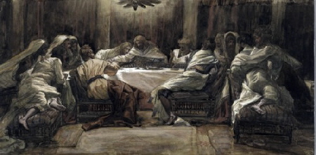 When Jesus had thus said, he was troubled in spirit, and testified, and said, Verily, verily, I say unto you, that one of you shall betray me. Then the disciples looked one on another, doubting of whom he spake. Now there was leaning on Jesus’ bosom one of his disciples, whom Jesus loved. Simon Peter therefore beckoned to him, that he should ask who it should be of whom he spake. He then lying on Jesus’ breast saith unto him, Lord, who is it? Jesus answered, He it is, to whom I shall give a sop, when I have dipped it. And when he had dipped the sop, he gave it to Judas Iscariot, the son of Simon. And after the sop Satan entered into him. Then said Jesus unto him, That thou doest, do quickly. Now no man at the table knew for what intent he spake this unto him. For some of them thought, because Judas had the bag, that Jesus had said unto him, Buy those things that we have need of against the feast; or, that he should give something to the poor. He then having received the sop went immediately out: and it was night.
