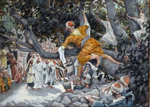 And Jesus entered and passed through Jericho. And, behold, there was a man named Zacchaeus, which was the chief among the publicans, and he was rich. And he sought to see Jesus who he was; and could not for the press, because he was little of stature. And he ran before, and climbed up into a sycomore tree to see him: for he was to pass that way. And when Jesus came to the place, he looked up, and saw him, and said unto him, Zacchaeus, make haste, and come down; for to day I must abide at thy house. And he made haste, and came down, and received him joyfully. And when they saw it, they all murmured, saying, That he was gone to be guest with a man that is a sinner. And Zacchaeus stood, and said unto the Lord: Behold, Lord, the half of my goods I give to the poor; and if I have taken any thing from any man by false accusation, I restore him fourfold. And Jesus said unto him, This day is salvation come to this house, forsomuch as he also is a son of Abraham. For the Son of man is come to seek and to save that which was lost.—Luke XIX. 1-10.