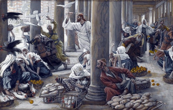 12 And Jesus went into the temple of God, and cast out all them that sold and bought in the temple, and overthrew the tables of the moneychangers, and the seats of them that sold doves,