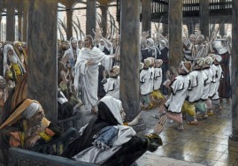 12-14. And Jesus went into the temple of God, and cast out all them that sold and bought in the temple, and overthrew the tables of the money-changers, and the seats of them that sold doves, and said unto them, It is written, My house shall be called the house of prayer; but ye have made it a den of thieves. And the blind and the lame came to him in the temple; and he healed them. We have already mentioned that this cleansing of the temple represented the final and complete glorification of the Lord’s humanity, by the expulsion of everything of hereditary evil and infirmity that adhered to him. The particulars demand our attention. The temple is called the temple of God. In the next verse it is called “my house of prayer,” which in John ii. 16 is expressed as “my Father’s house.” The name temple, like the divine name God, signifies the spiritual church, and the divine spiritual principle in the Lord and the name house, like the divine name Father, signifies the celestial church, and the divine celestial principle in the Lord. Or, to express the same truth otherwise, in relation to ourselves, the temple is the understanding, and the house is the will; and the understanding is the temple of God when the Lord’s truth is in it, and the will is the Father’s house when the Lord’s love is in it. And the mind is a house of prayer when the Lord is worshipped from love. But the human mind, at the time our Lord was upon earth, had become a den of thieves. Evil had taken possession of the human will, and falsity of the understanding – those faculties which God had formed to be the dwelling-place of his own goodness and truth. But a still greater sin than this had been committed. Evil and falsity had entered into and taken possession of good and truth, and profaned them, – men claiming for themselves what belongs to God, which is meant in the spiritual sense by theft. This had come to be the practice of the church, as it is in every time of great corruption. By those that sold and bought are signified those who make gain to themselves of things holy; by the money-changers are signified those who make gain of holy truths, and by them that sold doves are meant those who make gain of holy goods: wherefore it is said, that they had made the temple a den of thieves, for they are called thieves who steal truths from the Word, and pervert them, and apply them to confirm falses and evils, and extinguish them. These the Lord cast out of the temple. For that divine work which the Lord performed in the temple of his own body, was followed by a corresponding work in man, and in the church. The humanity which the Lord assumed from the fallen daughter of a fallen race inherited all human imperfections. When he had cast them out from his own humanity, he could then cast them out from men and from the church, and dispense the blessing of salvation to suffering humanity.