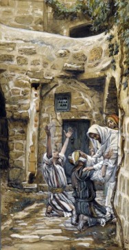 In the account of this miracle there are some particulars that demand our attention. The blind men follow the Lord, which spiritually means to follow his teaching and example. The perseverance of these men proved the means of their obtaining the object of their prayer, and teaches us the necessity of following on to do the Lord’s will, that we may know of his doctrine, or have a knowledge and perception of his truth. While they followed the Lord, they kept crying, and saying “Thou Son of David, have mercy on us.” Crying is expressive of affection, and saying of thought; teaching us that both must be directed to the Lord when we desire his mercy. Their addressing the Lord as the Son of David shows that they acknowledged him as the Messiah; but in the spiritual sense the Son of David signifies the Lord as Divine Truth; and the blind appropriately address him by this name, it being their desire to receive from him the power of seeing, that is, of understanding. They crave his mercy, for mercy is love grieving and brought down to the aid of the fallen and helpless. The celestial ask for mercy, the spiritual for grace; thus the prayer for mercy is expressive of a deeper sense of imperfection and a stronger desire for the needed salvation.