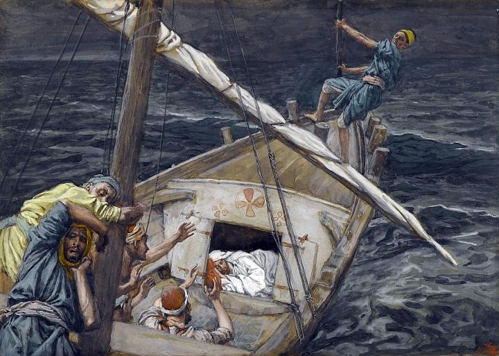 And the same day, when the even was come, he saith unto them, Let us pass over unto the other side. And when they had sent away the multitude, they took him even as he was in the ship. And there were also with him other little ships. And there arose a great storm of wind, and the waves beat into the ship, so that it was now full. And he was in the hinder part of the ship, asleep on a pillow: and they awake him, and say unto him, Master, carest thou not that we perish? And he arose, and rebuked the wind, and said unto the sea, Peace, be still. And the wind ceased, and there was a great calm. And he said unto them, Why are ye so fearful ? how is it that ye have no faith? And they feared exceedingly, and said one to another, What manner of man is this, that even the wind and the sea obey him?— Mark IV. 35~41.