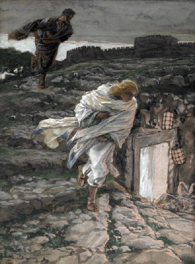 Another Gospel speaks more briefly of the first visit of the women, but tells also how John and Peter ran together to the sepulchre. They saw that the Lord was not there, and John believed that He was risen. So they went away again to their own home.