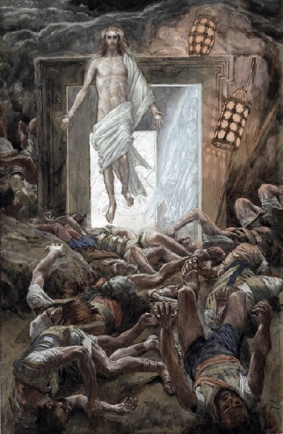 In the end of the sabbath, as it began to dawn toward the first day of the week, came Mary Magdalene and the other Mary to see the sepulchre. And, behold, there was a great earthquake: for the angel of the Lord descended from heaven, and came and rolled back the stone from the door, and sat upon it. His countenance was like lightning, and his raiment white as snow: And for fear of him the keepers did shake, and became as dead men. And the angel answered and said unto the women, Fear not ye: for I know that ye seek Jesus, which was crucified. He is not here: for he is risen, as he said. Come, see the place where the Lord lay. And go quickly, and tell his disciples that he is risen from the dead; and, behold, he goeth before you into Galilee; there shall ye see him: lo, I have told you. And they departed quickly from the sepulchre with fear and great joy; and did run to bring his disciples word.—Matthew XXVIII, 1-8.