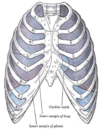 From the base of the lungs the pleura is reflected upon itself, and forms two membranous bas loosely enclosing again the already encased lungs. The fibrous membrane of these bags, next the walls of the thorax, attaches itself closely to the ribs, and extends its little fibres among the intercostal muscles, even to the fatty tissues of the chest, while the harder, smooth coat presents inwards a polished surface for the investing coat of the lungs to play upon. Thus their easy motions is secured.