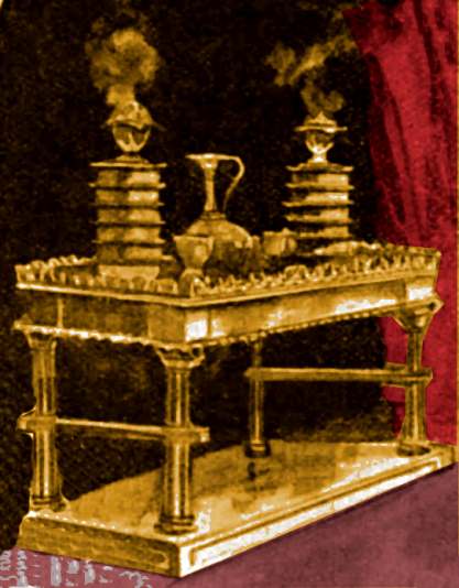 The Table of fragrant cedar then covered with gold, on which the twelve loaves were placed every Sabbath, represented this celestial state of the soul, in which the Lord supplies goodness, peace, and every blessing.